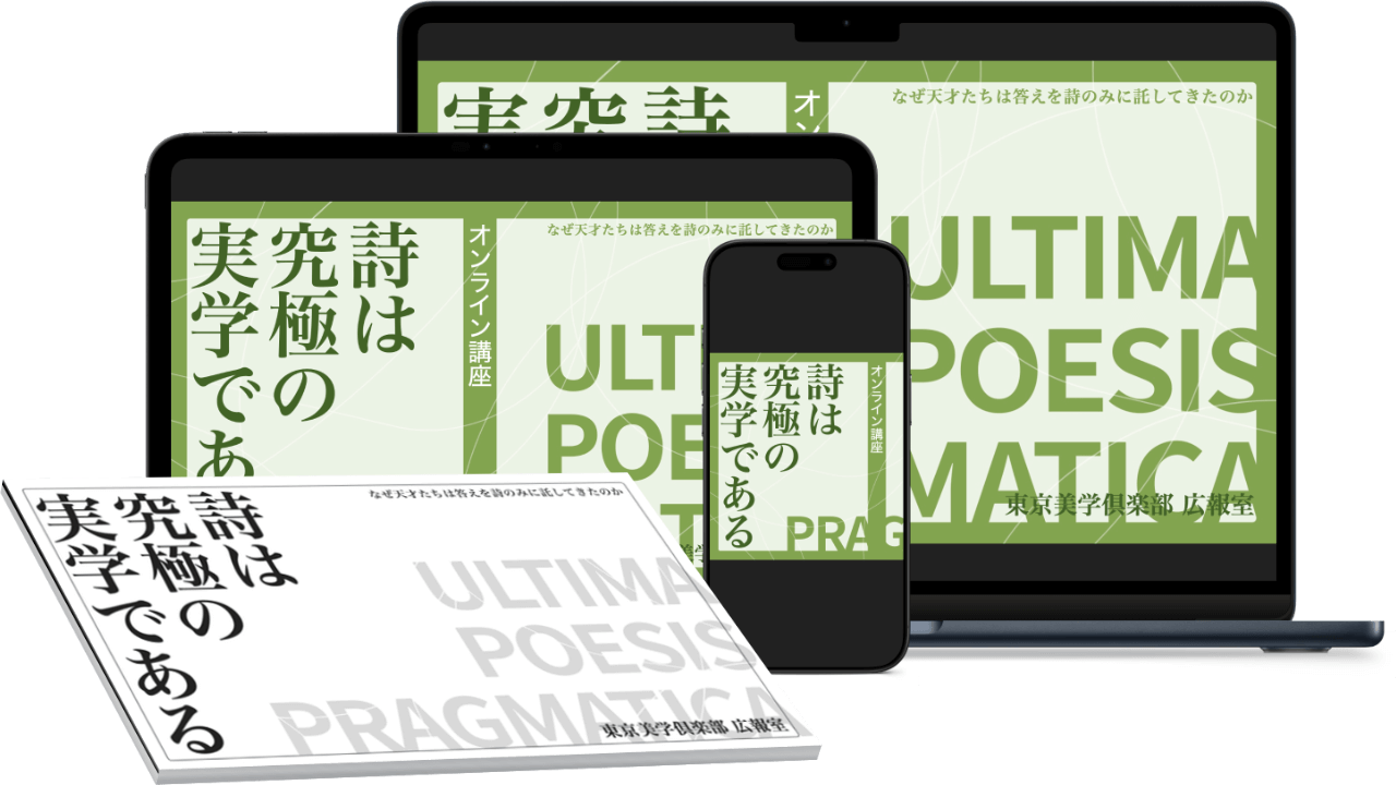 詩抄箋・動画講座『詩は究極の実学である』を発表しました 2025年4月28日(月) この度、東京美学倶楽部 広報室は、『詩は究極の実学である』を発表しました。詩抄箋と動画講座で構成された教養コンテンツとなります。 詳細はこちらのページでご確認ください。